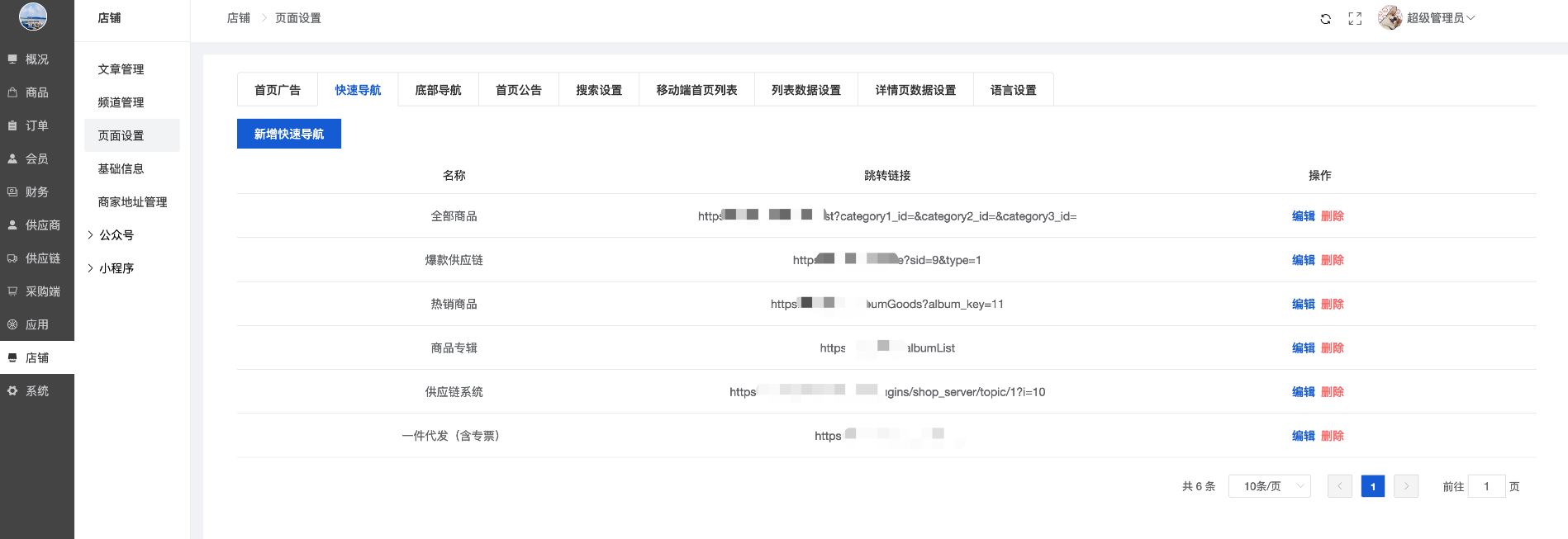 可以新增/编辑/删除采购商城顶部的导航,类似顶部导航,如图